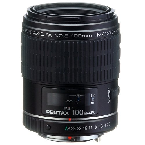 The PENTAX smc P-D FA 100mm F2.8 macro is designed specifically for digital cameras. It utilizes curvature and positioning of optical elements to virtually eliminate flare and ghosting for clear, high-quality images particularly important to digital photography. This versatile lens can also be used a telephoto lens and features Pentax's acclaimed multi-layer coating to lower surface reflection, reduce ultraviolet rays, and deliver clear, high-contrast images. Specifications: Mount: PENTAX Kaf Lens Construction: 9 elements in 8 groups Angle Of View: 24.5 degrees (16 degrees with *istD body) Diaphragm: Fully Automatic Blades: 8 Min Aperture: F32 Metering: TTL open-aperture metering Min Focus Distance: 11.93 in. Max Magnification: Life Size (1x) Filter Diameter: 49mm Size Max Diameter Length: 2.7 in. (67.5 mm) Lens Hood: PH-RBC 49mm (included)
